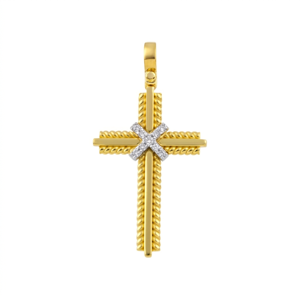 Μασίφ Χρυσός Σταυρός με στριφτό σύρμα
