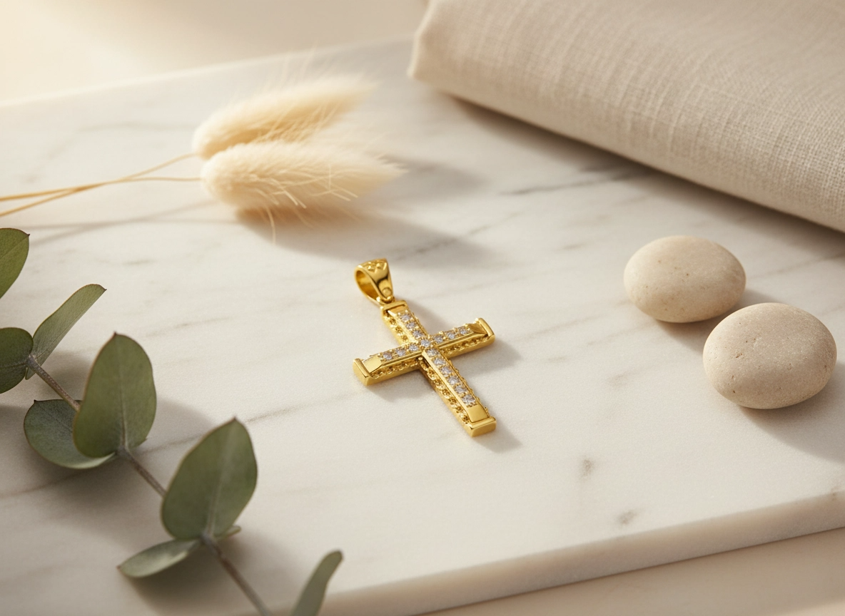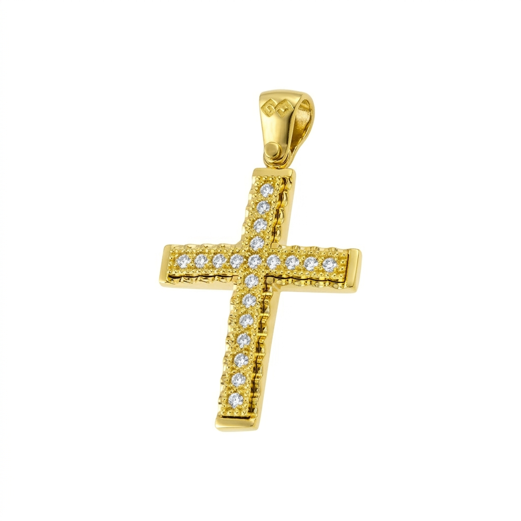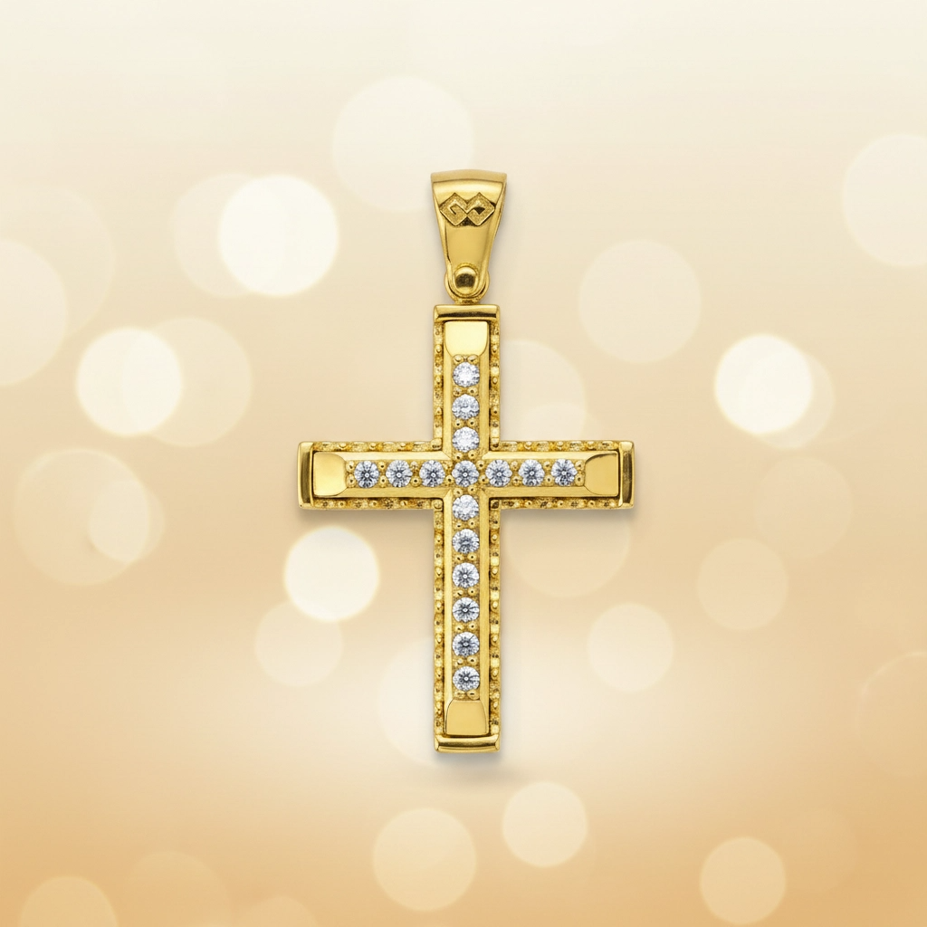 Χειροποίητος Μασίφ Χρυσός Σταυρός “Eternal Glow” με Κεντρική Σειρά ζιργκόν